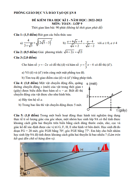 Đề học kì 1 Toán lớp 9 năm 2022 – 2023 phòng GD&ĐT quận 8 – TP HCM