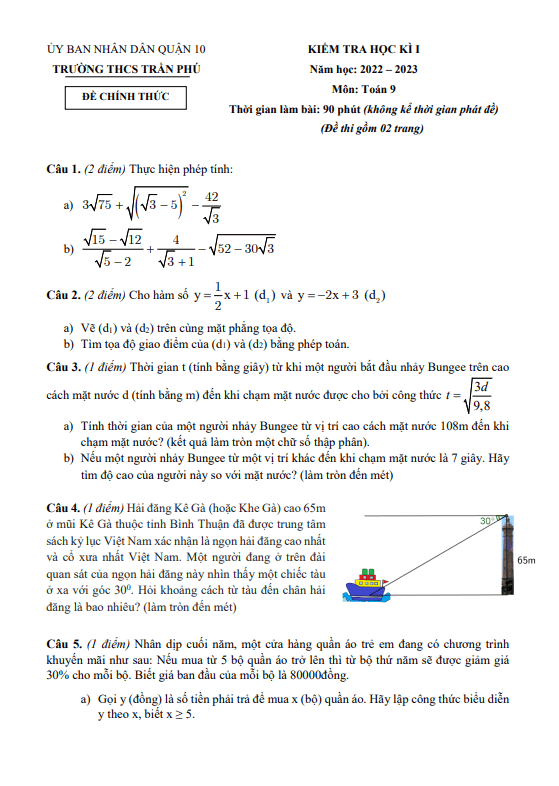 Xin chào quý thầy cô và các em học sinh lớp 9! Trong bài viết này, chúng ta sẽ cùng nhau điểm qua một số câu hỏi từ đề kiểm tra cuối học kì 1 môn Toán lớp 9 năm học 2022-2023 trường THCS Trần Phú, quận 10, thành phố Hồ Chí Minh.