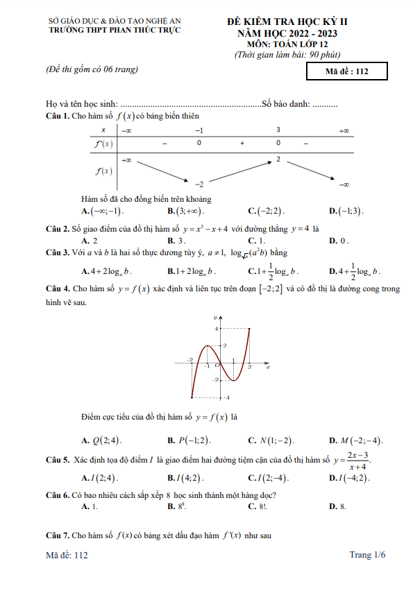Xin chào quý thầy cô và các em học sinh lớp 12! Hôm nay Sytu xin giới thiệu đến mọi người Đề học kỳ 2 môn Toán lớp 12 năm học 2022 – 2023 của trường THPT Phan Thúc Trực, tỉnh Nghệ An. Hãy cùng nhau tìm hiểu và giải quyết các bài toán thú vị sau đây: