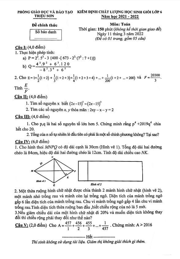 Đề học sinh giỏi Toán lớp 6 năm học 2021 – 2022 phòng GD&ĐT Triệu Sơn – Thanh Hóa