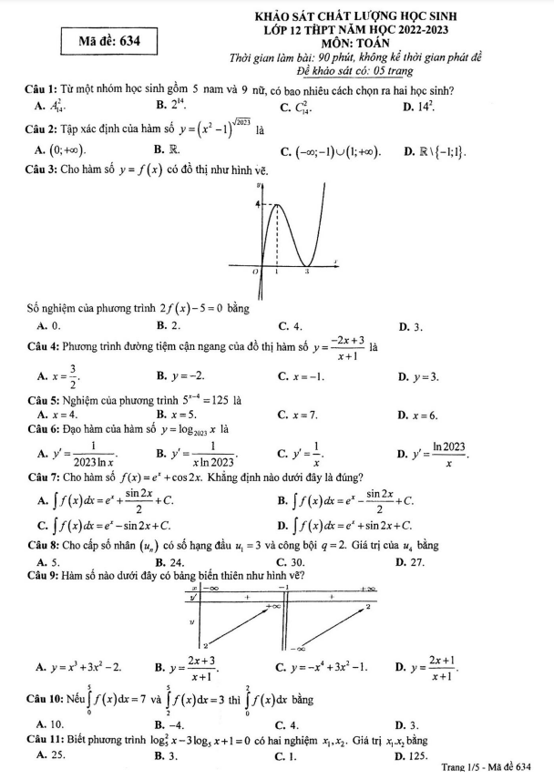 Dưới đây là một số câu hỏi mẫu trong đề khảo sát chất lượng Toán lớp 12 năm 2022 – 2023 sở GD&ĐT Phú Thọ: