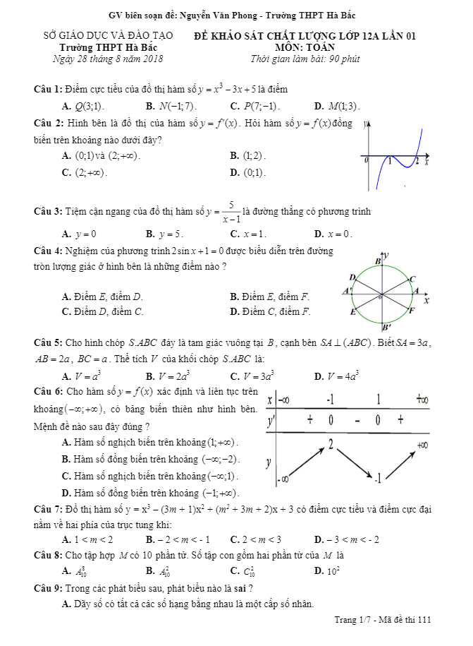 Đề khảo sát chất lượng Toán lớp 12 năm học 2018 – 2019 trường Hà Bắc – Hải Dương lần 1 là đề thi được biên soạn bởi thầy Nguyễn Văn Phong, giáo viên Toán của trường, nhằm giúp học sinh ôn tập lại kiến thức Toán lớp 11 và kiểm tra kiến thức Toán lớp 12 đã học trong giai đoạn đầu năm học. Đề thi này bao gồm các phần giải tích đến hết bài tiệm cận của đồ thị hàm số và phần hình học đến hết bài thể tích khối đa diện.Đề khảo sát được thực hiện dưới dạng trắc nghiệm, với 50 câu hỏi và thời gian làm bài là 90 phút. Đề thi cũng đi kèm đáp án để học sinh tự kiểm tra và đánh giá kết quả của mình. Một số ví dụ câu hỏi trong đề khảo sát bao gồm việc kiểm tra kiến thức về dãy số, hàm số và hình học, giúp học sinh củng cố và áp dụng kiến thức một cách linh hoạt và chính xác.Hơn nữa, đề thi cũng đưa ra các bài toán ứng dụng phù hợp với chương trình học Toán lớp 12, giúp học sinh hiểu rõ hơn về cách áp dụng kiến thức vào thực tế. Việc tổ chức đề khảo sát chất lượng như vậy không chỉ giúp học sinh ôn tập mà còn giúp giáo viên đánh giá được sự hiểu biết và ứng dụng kiến thức của học sinh, từ đó có những điều chỉnh và cải thiện đáng kể trong quá trình dạy và học. Đề khảo sát chất lượng Toán lớp 12 năm học 2018 – 2019 trường Hà Bắc – Hải Dương lần 1 là cầu nối giữa kiến thức lý thuyết và thực hành, giúp học sinh phát triển kỹ năng Toán một cách toàn diện và hiệu quả.