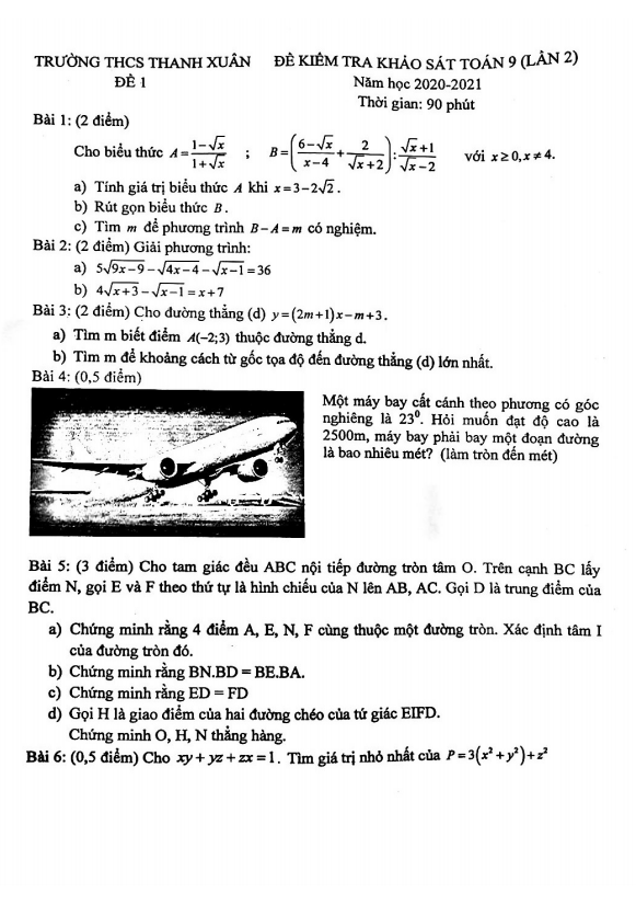 Đề khảo sát Toán lớp 9 lần 2 năm 2020 – 2021 trường THCS Thanh Xuân Hà Nội