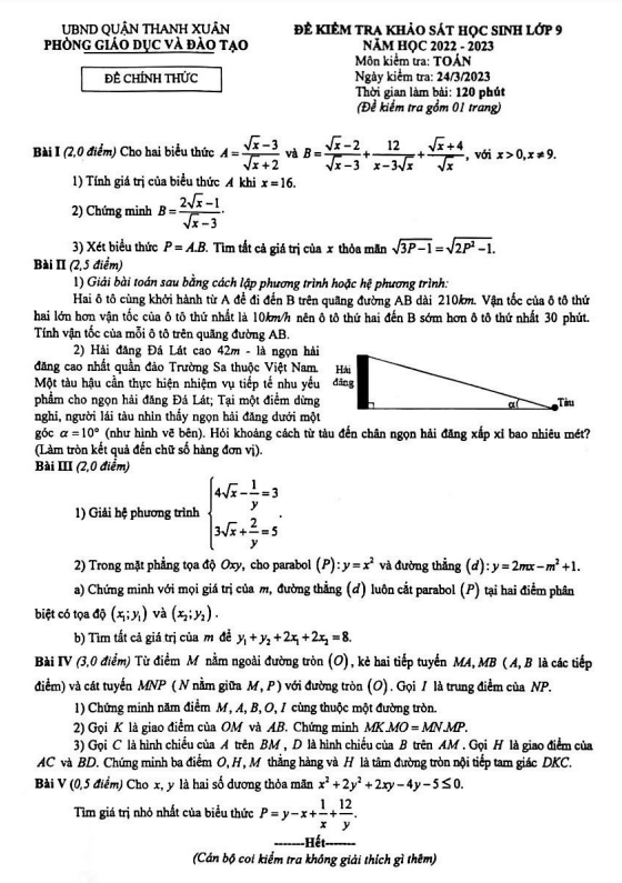 Chào đón quý thầy cô và các em học sinh lớp 9! Đây là đề kiểm tra khảo sát môn Toán cho năm học 2022-2023 của phòng Giáo dục và Đào tạo Thanh Xuân, Hà Nội. Kỳ thi sẽ diễn ra vào ngày 24 tháng 03 năm 2023.
