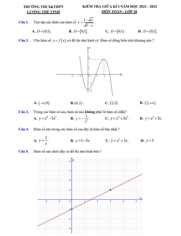 Trích dẫn đề kiểm tra giữa kì 1 Toán lớp 10 năm 2021 – 2022 trường Lương Thế Vinh – Hà Nội: