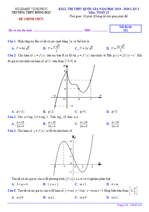 Đề KSCL lớp 12 môn Toán lần 2 thi THPT Quốc gia 2020 tại trường THPT Đồng Đậu Vĩnh Phúc được tổ chức nhằm giúp học sinh khối 12 rèn luyện, củng cố và nâng cao kiến thức – kỹ năng giải toán, đồng thời chuẩn bị tốt nhất cho kỳ thi quan trọng. Kỳ thi này đã diễn ra vào ngày … tháng 12 năm 2019 với mã đề 101.