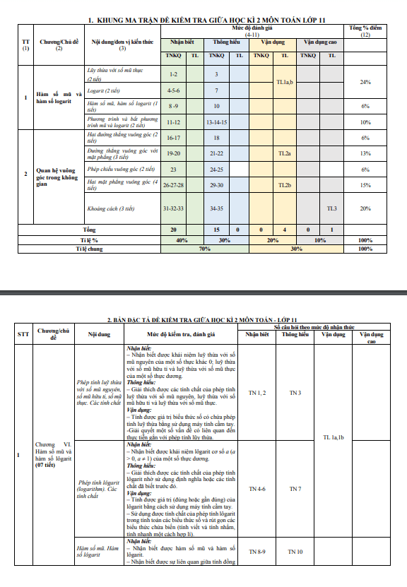 Đề minh họa giữa học kì 2 (HK2) lớp 11 môn Toán năm 2023 2024 tại sở GD ĐT Quảng Ngãi đã được công bố. Đề thi được biên soạn theo cấu trúc 70% trắc nghiệm và 30% tự luận, bao gồm ma trận, bảng đặc tả, đáp án và hướng dẫn chấm điểm.Trước hết, trong chương VI về Hàm số mũ và Hàm số lôgarit, học sinh sẽ được giới thiệu với phép tính luỹ thừa với số mũ nguyên, số mũ hữu tỉ, số mũ thực. Họ sẽ được hướng dẫn nhận biết và thông hiểu về khái niệm luỹ thừa với số mũ nguyên, hữu tỉ và thực, cũng như vận dụng trong giải các bài tập có liên quan đến thực tiễn.Tiếp theo, học sinh sẽ tiếp tục học về phép tính lôgarit, nhận biết và thông hiểu các tính chất của lôgarit. Họ sẽ được hướng dẫn cách tính giá trị của lôgarit và sử dụng tính chất của nó để giải quyết các bài toán.Chương VII về Quan hệ vuông góc trong không gian đưa ra kiến thức về góc giữa hai đường thẳng, hai đường thẳng vuông góc, đường thẳng vuông góc với mặt phẳng và phép chiếu vuông góc. Học sinh sẽ được hướng dẫn nhận biết và tính toán góc giữa đường thẳng và mặt phẳng, cũng như tìm hiểu về hai mặt phẳng vuông góc và khoảng cách trong không gian.Nội dung này sẽ giúp học sinh lớp 11 nắm vững kiến thức cơ bản, áp dụng vào thực tế và chuẩn bị tốt cho kiểm tra giữa học kì 2 môn Toán. Đề minh họa này sẽ là tài liệu hữu ích cho giáo viên và học sinh trong quá trình học tập và ôn tập.