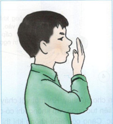 Em thấy có luồng không khí ấm chạm vào tay khi thở ra và luồng không khí mát tràn vào lỗ mũi.