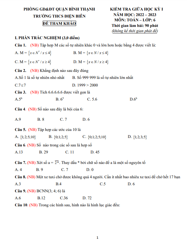 I have the following content, write about the Mid-Term Exam Reference for Grade 6 Math in the 2022-2023 school year at Dien Bien Junior High School, Binh Thanh District, Ho Chi Minh City: “Sytu would like to introduce to teachers, and students in grade 6 the mid-term exam reference in Math for the 2022-2023 school year at Dien Bien Junior High School, Binh Thanh District, Ho Chi Minh City; the exam is structured as 30% multiple choice + 70% open-ended questions (according to the grading scale), students have 90 minutes to complete the test (excluding exam distribution time), the exam includes multiple choice answers, detailed explanations for open-ended questions, and grading instructions. Quotation from the Mid-Term Exam Reference for Grade 6 Math in 2022-2023 at Dien Bien Junior High School – Ho Chi Minh City: + Hương and Hoa often go to the library to read books. Hương goes to the library every 8 days. Hoa goes to the library every 10 days. They both go to the library on the same day for the first time. After how many days will they meet at the library together again? + A trapezoidal piece of land, a cement path is made as shown in the figure for access, the rest of the land is planted with sunflowers. The cost to plant sunflowers per square meter is 100,000 dong. How much does it cost to plant sunflowers? + Class 6A plans to visit and give gifts to friends in need due to the Covid pandemic. Each gift package includes 10 notebooks priced at 10,000 dong each, 5 pens priced at 5,000 dong each, and a set square priced at 15,000 dong. How much is the total value of each gift package? WORD file (for teachers): ” Based on the content above, please rewrite it into a new content, analyze in detail, specific, easy to understand than the original content. Like user behavior, multiple nuances, expressions. The heading is formatted like