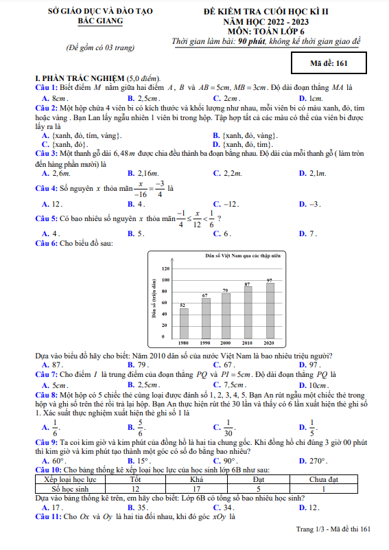 Đề thi cuối học kì 2 môn Toán lớp 6 năm 2022 – 2023 sở GD&ĐT Bắc Giang đã được Sytu giới thiệu đến quý thầy cô và các em học sinh lớp 6. Đề thi bao gồm 50% câu hỏi trắc nghiệm và 50% câu hỏi tự luận, thời gian làm bài là 90 phút, không tính thời gian giao đề. Mỗi học sinh sẽ được cung cấp đề thi có đáp án, lời giải chi tiết và hướng dẫn chấm điểm.Đề thi bắt đầu với một câu hỏi về việc mua giày trong ngày Black Friday, với việc giảm giá 45% và thẻ khách hàng thân thiết giảm thêm 5%. Học sinh cần tính giá bán ban đầu của đôi giày trước khi được khuyến mãi.Câu tiếp theo liên quan đến việc lấy gạo từ một thùng chứa 60kg gạo theo tỉ lệ đã cho. Học sinh cần tính toán để xác định số gạo còn lại trong thùng sau hai lần lấy.Câu cuối cùng yêu cầu học sinh tính độ dài các đoạn thẳng trên đường thẳng xy và tìm trung điểm của một đoạn thẳng. Đây là bài toán về tính toán và logic, khuyến khích học sinh suy luận và tư duy logic để giải quyết.Đề thi cuối học kì 2 môn Toán lớp 6 năm 2022 – 2023 sở GD&ĐT Bắc Giang chắc chắn sẽ là thách thức đối với các em học sinh, nhưng cũng là cơ hội để họ thể hiện kiến thức và kỹ năng họ đã học trong suốt năm học. Mong rằng các em sẽ làm tốt và học hỏi từ đề thi này.