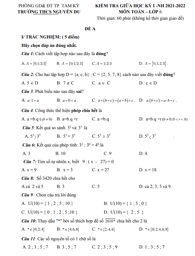 Đề giữa HK1 Toán 6