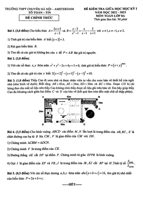 Xin chào quý thầy cô và các em học sinh lớp 8! Dưới đây là đề kiểm tra giữa học kỳ 1 môn Toán lớp 8 năm học 2022-2023 tại trường THPT chuyên Hà Nội – Amsterdam.