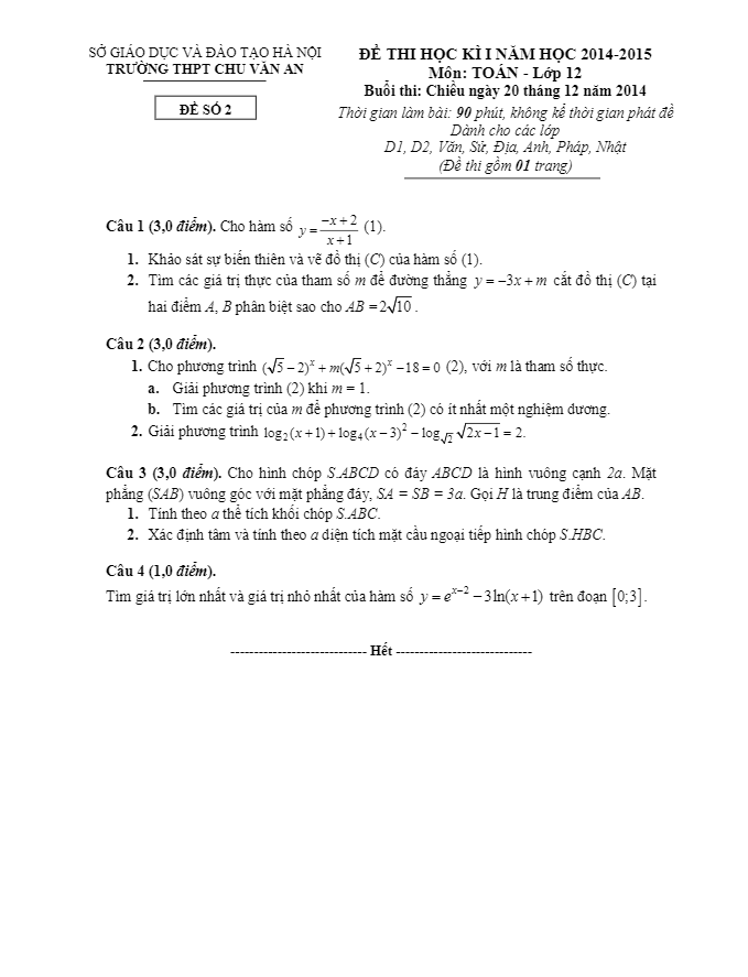 Đề thi học kì 1 (HK1) lớp 10 ban cơ bản trường Chu Văn An – Hà Nội năm học 2014 – 2015 là bài kiểm tra để đánh giá kiến thức của học sinh sau một kỳ học. Đề thi này bao gồm các nội dung sau: