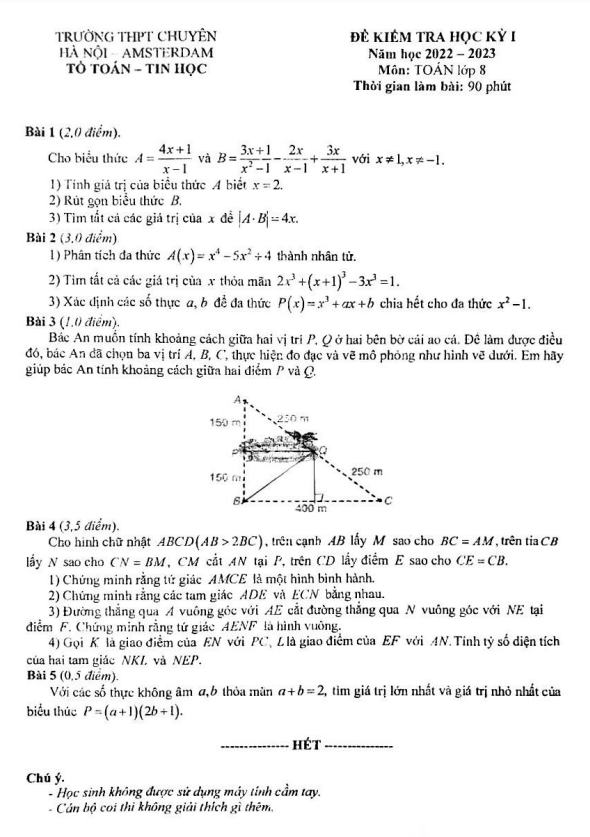 Đề thi học kì 1 Toán lớp 8 năm 2022 – 2023 Trường THPT Chuyên Hà Nội Amsterdam
