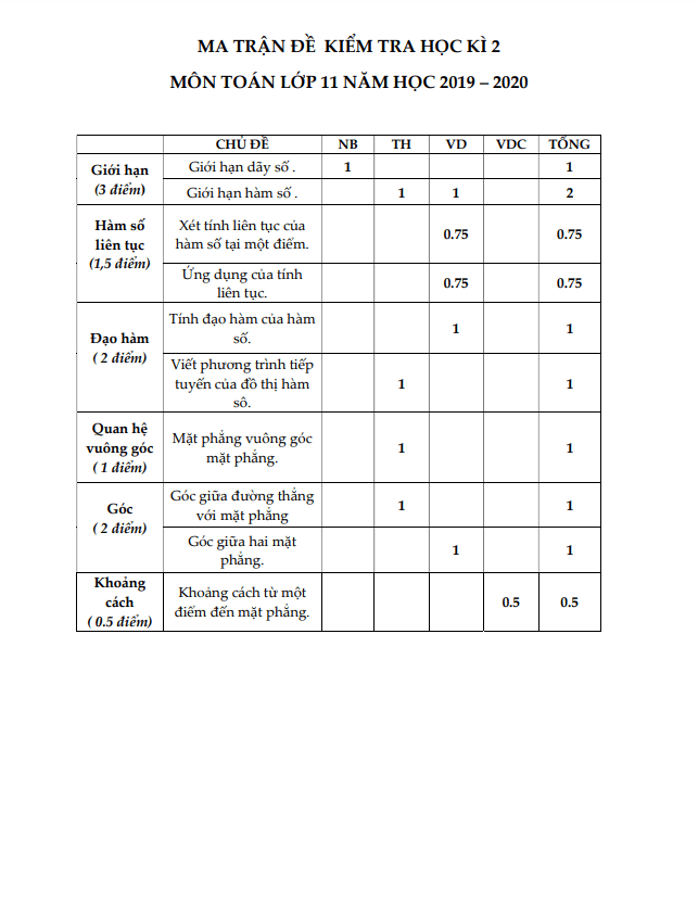 Đề thi học kì 2 Toán lớp 11 năm 2019-2020 trường THPT Mạc Đĩnh Chi TP.HCM