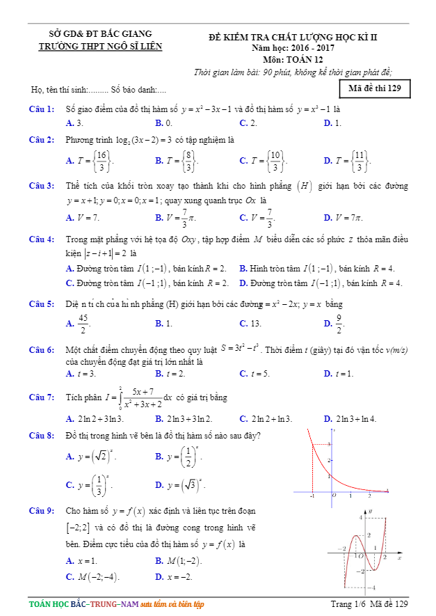 Với những bài toán đa dạng và thú vị như vậy, đề thi HK2 Toán lớp 12 năm học 2016 – 2017 trường THPT Ngô Sĩ Liên – Bắc Giang chắc chắn sẽ giúp học sinh rèn luyện và nâng cao kiến thức môn Toán của mình một cách hiệu quả.