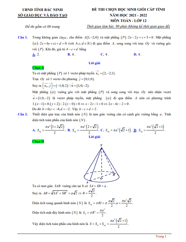 Đề thi học sinh giỏi tỉnh lớp 12 môn Toán năm 2021 2022 sở GD ĐT Bắc Ninh