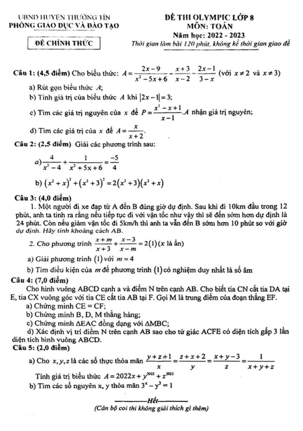 Đề thi Olympic lớp 8 môn Toán năm 2022 2023 phòng GD ĐT Thường Tín Hà Nội