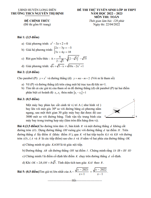 Bắt đầu với phần trích dẫn đề thi thử Toán năm 2022-2023 trường THCS Nguyễn Thị Định BR VT: