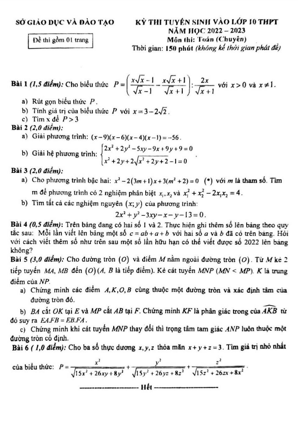 Trích dẫn đề tuyển sinh lớp 10 môn Toán (chuyên) năm 2022-2023 sở GD&ĐT Đắk Nông: