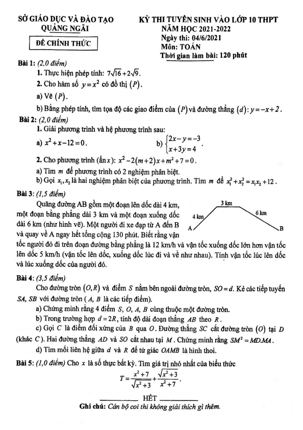 Đề tuyển sinh THPT môn Toán năm 2021 2022 sở GD ĐT Quảng Ngãi