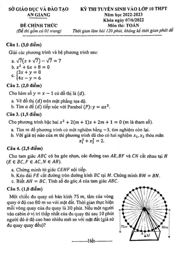 Đề tuyển sinh THPT môn Toán năm 2022-2023 Sở GD&ĐT An Giang