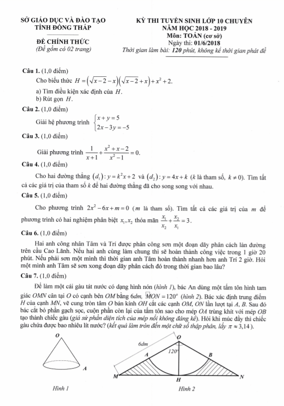 Chương trình Đề tuyển sinh vào 10 chuyên môn Toán cơ sở năm 2018-2019 tại sở GD ĐT Đồng Tháp