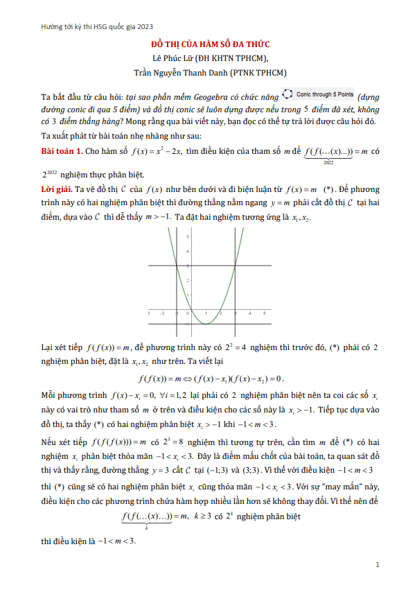 Tài liệu với chủ đề về Đồ thị của hàm số đa thức này được biên soạn bởi hai tác giả là Lê Phúc Lữ, từ Đại học Khoa học Tự nhiên Thành phố Hồ Chí Minh và Trần Nguyễn Thanh Danh, là giáo viên phụ trách nghiên cứu Toán học tại Thành phố Hồ Chí Minh. Tài liệu gồm tổng cộng 10 trang, được thiết kế đặc biệt để hướng dẫn cho các thí sinh dự thi chọn học sinh giỏi môn Toán THPT cấp Quốc gia trong năm 2023.