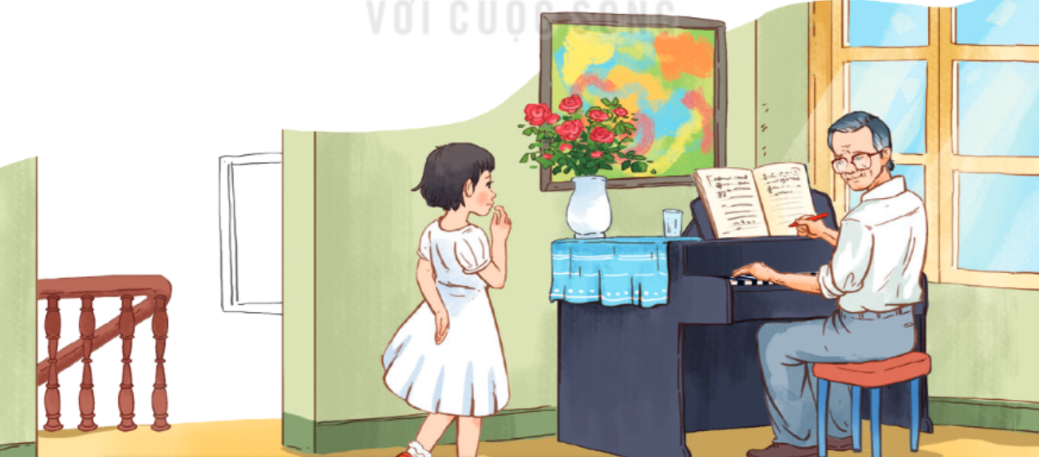 Em quan sát bức tranh và dựa vào nội dung câu chuyện để dự đoán điều Mai sẽ nói với ông nhạc sĩ sau khi biết việc ông đã làm cho mình.