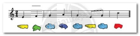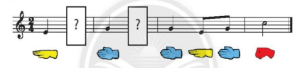 Chọn tên nốt Pha hoặc Son, La, Đố để thay cho mỗi dấu chấm hỏi (?); sau đó đọc nhạc với kí hiệu nốt nhạc bàn tay