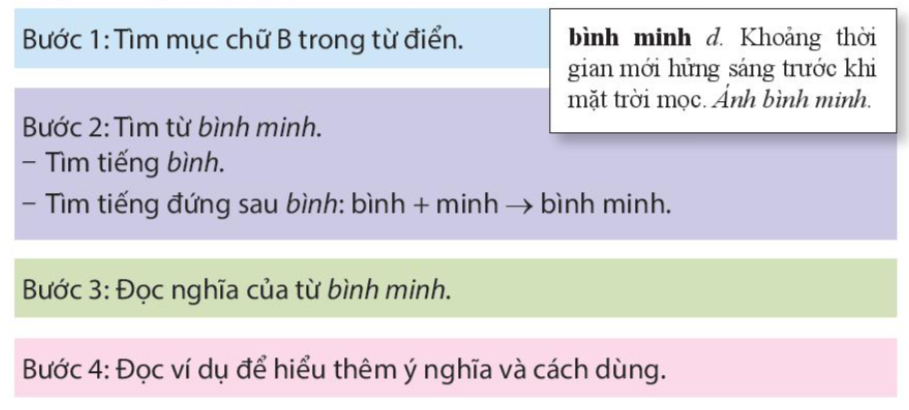 Ví dụ: Tìm nghĩa của từ bình minh.