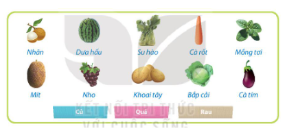 1. Sắp xếp các loại rau quả vào ba nhóm phù hợp: