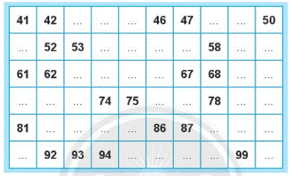 – Viết tiếp các số còn thiếu vào bảng theo thứ tự 41, 42, 43, 44, …, 99, 100.