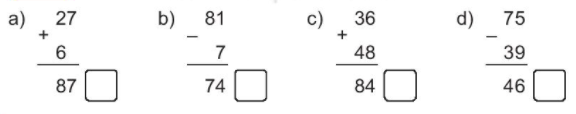 Phép tính ở câu d có kết quả sai. 75 – 39 = 36.