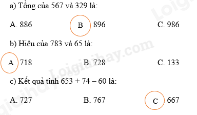 Em thực hiện tính kết quả các phép tính rồi khoanh chữ đặt trước câu trả lời đúng.