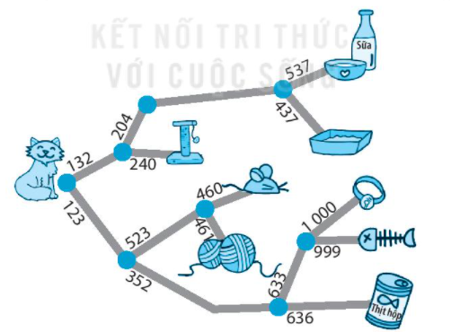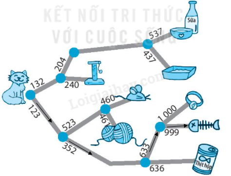 Mèo sẽ lấy được đồ vật nào nếu đi theo số bé hơn tại mỗi ngã rẽ?
