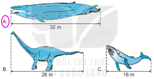 b) Con vật B dài hơn con vật C là 26 m – 16 m = 10 m.