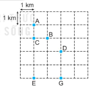 Hai con chin sẻ đang bay có thể nhìn thấy nhau nếu chúng cách nhau không quá 2 km. Có 6 con chim sẻ đang ở các vị trí A, B, C, D, E, G như hình vẽ.
