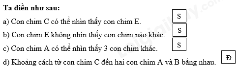 a) Con chim C có thể nhìn thấy con chim E.