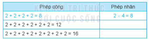 Viết các phép nhân thành tổng các số hàng bằng nhau rồi tính kết quả.