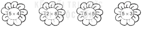 Vậy tô màu đỏ vào bông hoa ghi phép tính 5 x 5, màu xanh vào bông hoa ghi phép tính 5 x 3.