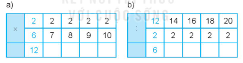 Dựa vào bảng nhân 2 để tìm các số còn thiếu và điền vào ô trống cho thích hợp.