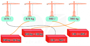 Vậy mỗi thùng hàng được nối với cần cẩu tương ứng như sau: