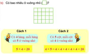 – Để tìm số ô vuông nhỏ có tất cả ta lấy số ô vuông nhỏ có trong 1 cột nhân với số cột.