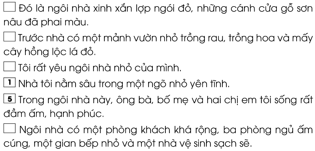Đánh số thứ tự, sắp xếp lại các câu dưới đây thành một đoạn văn hoàn chỉnh: