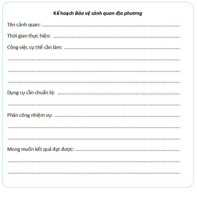 Xây dựng kế hoạch Bảo vệ cảnh quan địa phương theo gợi ý dưới đây