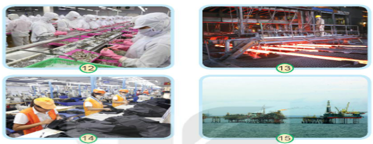 Nói tên hoạt động sản xuất công nghiệp trong mỗi hình và cho biết hoạt động đó làm ra sản phẩm gì.