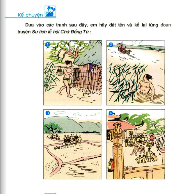 Dựa vào các tranh, hãy đặt tên và kể lại từng đoạn Sự tích lễ hội Chử Đồng Tử :