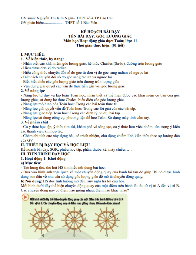 Chương trình bài dạy lớp 11 môn Toán Chân Trời Sáng Tạo