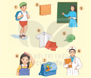 Chỉ vật: cặp sách, quần áo, mũ, cặp